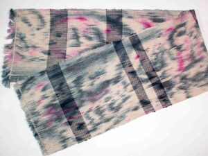 Ella Morreale employs text and gestural drawings applied to fibre, utilizing surface design techniques such as polychromatic printing and stitching.